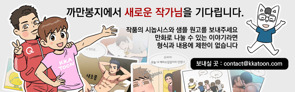 시놉시스와 그림이 포함된 캐릭터 설명 그리고 최소 1화 분량의 완성원고를 contact@kkatoon.com로 보내주시면 검토 후 연락 드리겠습니다